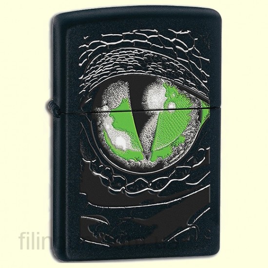 Классическая бензиновая зажигалка Zippo 24719 Reptile Eye Black Matte. Металлический корпус имеет черное матовое покрытие, стойкое к царапинам и стиранию. На лицевой стороне изображение змеиного глаза. Зажигалка Zippo упакована в фирменную подарочную коробочку с логотипом Zippo.
