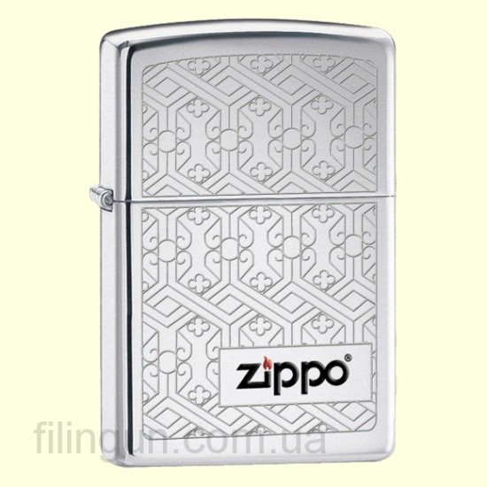Классическая бензиновая зажигалка Zippo 24763 Venetian Filigree High Polish Chrome. Металлический корпус имеет глянцевое хромированное покрытие. На лицевой стороне выгравирован узор в стиле Венецианской филиграни (стеклянная вить) с логотипом Zippo в правом нижнем углу. Зажигалка Zippo упакована в фирменную подарочную коробочку с логотипом Zippo.