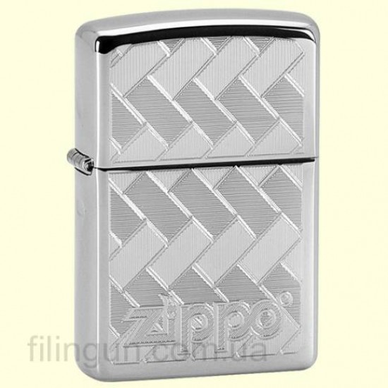 Классическая бензиновая зажигалка Zippo 250.716 Diagonal Weave High Polish Chrome. Металлический корпус имеет глянцевое хромированное покрытие. На лицевой стороне оригинальная гравировка диагонального плетения с логотипом Zippo. Зажигалка Zippo упакована в фирменную подарочную коробочку с логотипом Zippo.