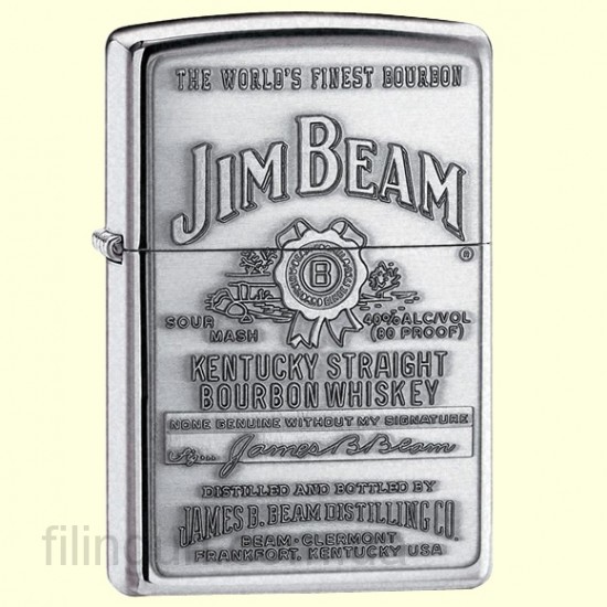Классическая бензиновая зажигалка Zippo 250JB.928 Jim Beam Pewter Emblem High Polish Chrome. Металлический корпус имеет глянцевое хромированное покрытие. На лицевой стороне объемная пьютерная (сплав олова) эмблема знаменитого американского бурбона Jim Beam, выпускаемого в США еще с 1795 года. Зажигалка Zippo упакована в фирменную подарочную коробочку с логотипом Zippo.