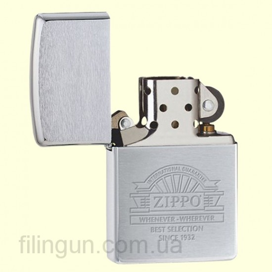 Классическая бензиновая зажигалка Zippo 266700 Whenever Wherever Brushed Chrome. Металлический корпус имеет матовое хромированное покрытие. На лицевой стороне оригинальная гравировка в виде пожизненной гарантии на Zippo. Зажигалка Zippo упакована в фирменную подарочную коробочку с логотипом Zippo.