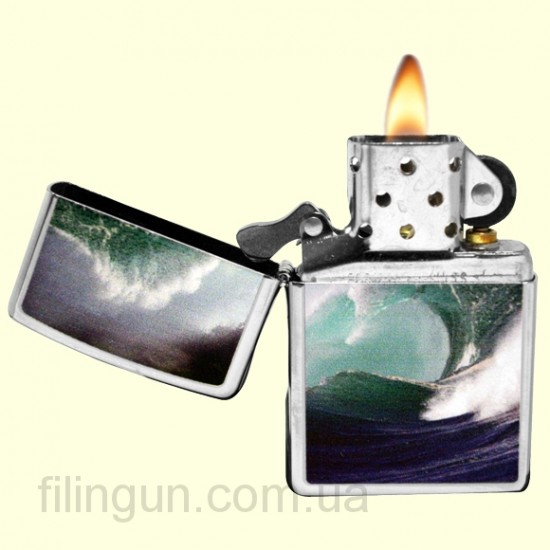 Классическая бензиновая зажигалка Zippo 28178 Ocean Wave High Polish Chrome. Металлический корпус имеет глянцевое хромированное покрытие. На лицевой стороне, при помощи метода высокотемпературного спекания порошковой краски нанесено объемное, красочное изображение океанской волны. Зажигалка Zippo упакована в фирменную подарочную коробочку с логотипом Zippo.