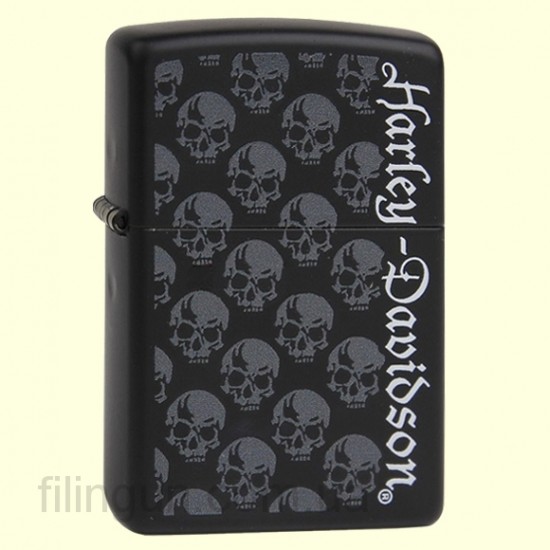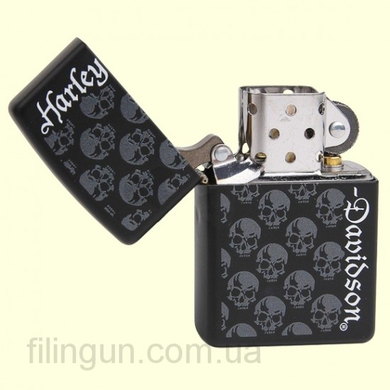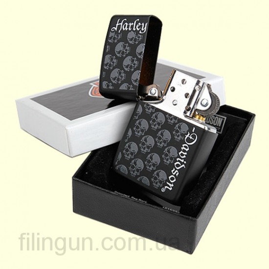 Классическая бензиновая зажигалка Zippo 28264 Harley Davidson Skull and Logo Black Matte. Металлический корпус имеет черное матовое покрытие, стойкое к царапинам и стиранию. На лицевой стороне изображение логотипа Harley Davidson с накаткой в виде черепов. Зажигалка Zippo упакована в фирменную подарочную коробочку с логотипом Harley Davidson.