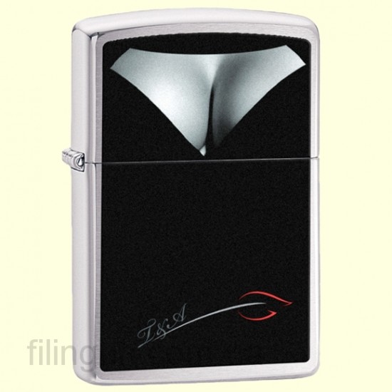 Классическая бензиновая зажигалка Zippo 28273 BS Decollettage Brushed Chrome. Металлический корпус имеет матовое хромированное покрытие. На лицевой стороне изображение красивого женского декольте. Зажигалка Zippo упакована в фирменную подарочную коробочку с логотипом Zippo.