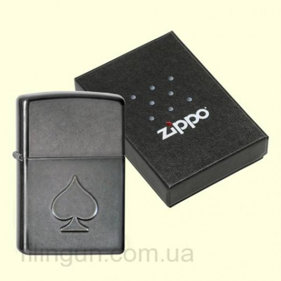 Классическая бензиновая зажигалка Zippo 28379 Stamped Spade Gray Dusk. Металлический корпус имеет глянцевое темно-серое покрытие, при нанесении которого используется запатентованная компанией, специальная PVD технология, придающая высокую стойкость поверхности к истиранию и появлению царапин. На лицевой стороне тиснение в виде чёрной карточной масти - пики, нанесено методом внутренней штамповки. Зажигалка Zippo упакована в фирменную подарочную коробочку с логотипом Zippo.
