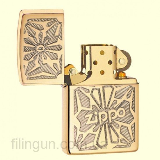 Классическая бензиновая зажигалка Zippo 28450 Ornament High Polish Brass. Металлический корпус имеет глянцевое хромированное покрытие. На лицевой стороне выгравирован цветочный орнамент с логотипом Zippo. Зажигалка Zippo упакована в фирменную подарочную коробочку с логотипом Zippo.