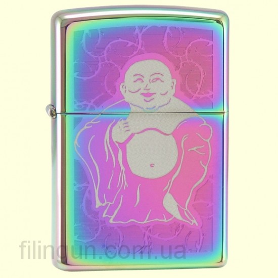 Классическая бензиновая зажигалка Zippo 28480 Buddha Belly Spectrum. Металлический корпус имеет красивую люминесцирующую богатыми оттенками радуги, глянцевую поверхность. В обработке поверхности корпуса зажигалки применена запатентованная компанией, специальная PVD технология, придающая высокую стойкость поверхности к истиранию и появлению царапин. На лицевой стороне гравировка с изображением Будды. Зажигалка Zippo упакована в фирменную подарочную коробочку с логотипом Zippo.