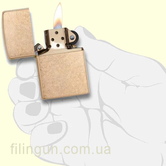 Дизайн и качество изготовления: зажигалка выполнена из латуни с матовой поверхностью, которая создает эффект "старения" (tumbled brass), придавая ей винтажный и элегантный вид. Этот дизайн не только придает уникальный внешний вид, но и защищает поверхность от царапин и отпечатков пальцев.