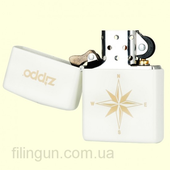 Классическая бензиновая зажигалка Zippo 28555 Star Compass White Matte. Металлический корпус имеет белое матовое покрытие стойкое к царапинам и стиранию. На лицевой стороне восьмилучевое изображение розы ветров. Зажигалка Zippo 28555 входит в лимитированную коллекцию зажигалок 2013 года, отличительной особеностью которой, является незатейливый рисунок и приемлемая цена. Зажигалка Zippo упакована в фирменную подарочную коробочку с логотипом Zippo.