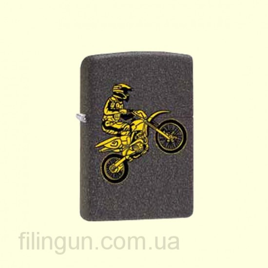Классическая бензиновая зажигалка Zippo 28701 Motorcycle Iron Stone. Металлический корпус имеет матовое, износоустойчивое покрытие внешне напоминающее камень. На лицевой стороне изображение мотогонщика. Зажигалка Zippo упакована в фирменную подарочную коробочку с логотипом Zippo.
