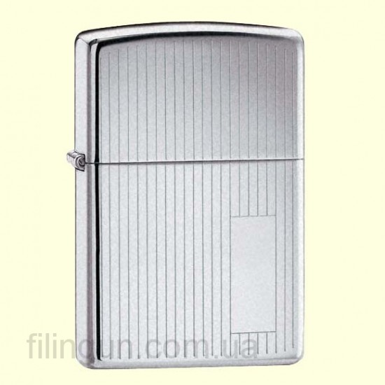 Классическая бензиновая зажигалка Zippo 350 Engine Turned High Polish Chrome. Металлический корпус имеет глянцевое хромированное покрытие. Выгравированый рисунок в виде тонких продольных линий нанесен, как на лицевой, так и обратной стороне корпуса, а так же на лицевой стороне имеется место для гравировки личных инициалов или памятной даты. Зажигалка Zippo упакована в фирменную подарочную коробочку с логотипом Zippo.