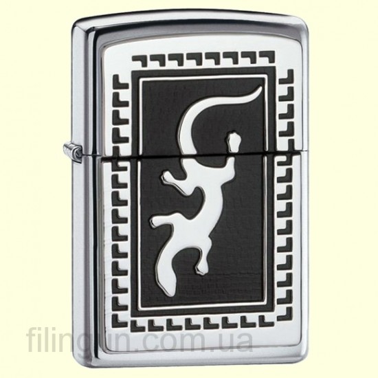 Классическая бензиновая зажигалка Zippo 652 Gecko Emblem High Polish Chrome. Металлический корпус имеет глянцевое хромированное покрытие. На лицевой стороне накладка с гравировкой гекона. Зажигалка Zippo упакована в фирменную подарочную коробочку с логотипом Zippo.