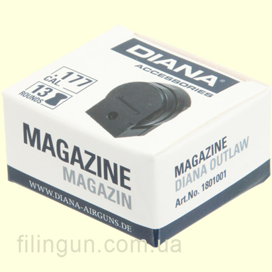 Запасной магазин Diana для Outlaw - 13 зарядный. Вы можете купить у нас в магазине Filingun.com.ua. В комплект поставки идет 1 шт.