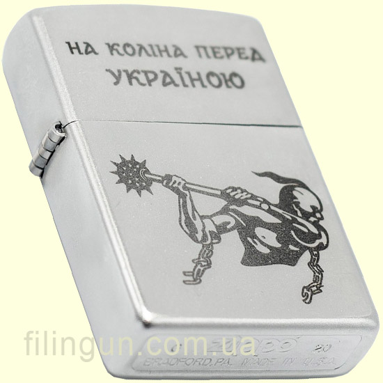 Зажигалка Zippo 205 HK "На коліна перед Україною" купить - большой выбор, низкие цены, профессиональная консультация, все это и многое другое рады предложить в нашем интернет-магазине. Оформить заказ можно через сайт 24/7, или по телефонам в рабочее время с 9-00 до 19-00 ежедневно. Курьерская доставка и самовывоз в Киеве, транспортными службами доставка в другие регионы и города по Украине: Львов, Николаев, Горловка, Луцк, Каменец-Подольский, Запорожье, Мариуполь, Кривой Рог, Херсон, Луганск, Полтава, Ивано-Франковск, Чернигов, Мелитополь, Ужгород, Лисичанск, Кропивницкий, Никополь, Одесса, Тернополь, Полтава, Славянск, Кременчуг, Ровно, Краматорск, Харьков, Северодонецк, Мариуполь, Каменское, Винница, Белая Церковь, Житомир, Донецк, Днепр, Хмельницкий, Черкассы, Черновцы, Сумы и другие.