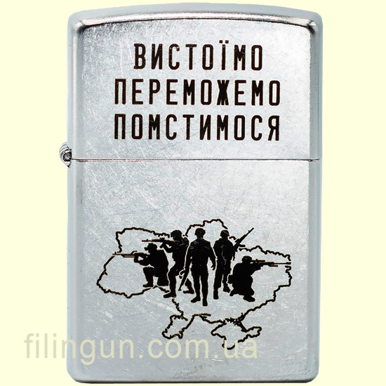 Зажигалка Zippo 207 VP "Вистоїмо Переможемо Помстимося" купить - большой выбор, низкие цены, профессиональная консультация, все это и многое другое рады предложить в нашем интернет-магазине. Оформить заказ можно через сайт 24/7, или по телефонам в рабочее время с 9-00 до 19-00 ежедневно. Курьерская доставка и самовывоз в Киеве, транспортными службами доставка в другие регионы и города по Украине: Львов, Николаев, Горловка, Луцк, Каменец-Подольский, Запорожье, Мариуполь, Кривой Рог, Херсон, Луганск, Полтава, Ивано-Франковск, Чернигов, Мелитополь, Ужгород, Лисичанск, Кропивницкий, Никополь, Одесса, Тернополь, Полтава, Славянск, Кременчуг, Ровно, Краматорск, Харьков, Северодонецк, Мариуполь, Каменское, Винница, Белая Церковь, Житомир, Донецк, Днепр, Хмельницкий, Черкассы, Черновцы, Сумы и другие.