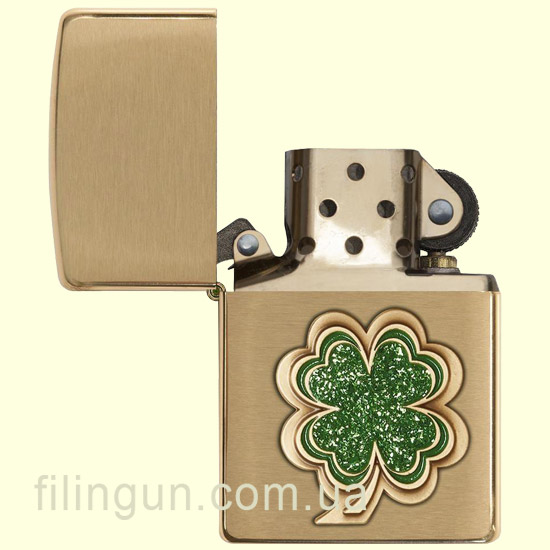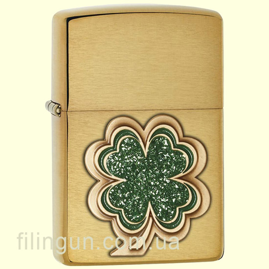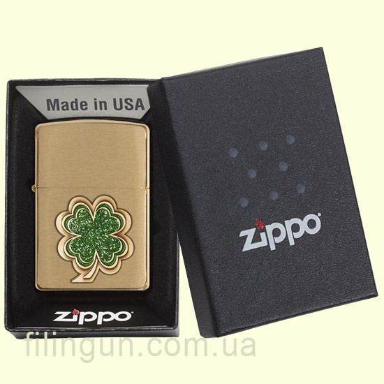 Классическая бензиновая зажигалка Zippo 28806 Shamrock Brushed Brass. Латунный корпус зажигалки имеет шлифованную поверхность, на которой не остается следов от пальцев. На лицевой стороне объемная эмблема четырехлистного клевера, изнутри инкрустированная эпоксидной смолой. Поставляется в подарочной коробочке черного цвета, созданной из экологически чистых материалов, с фирменным логотипом компании.