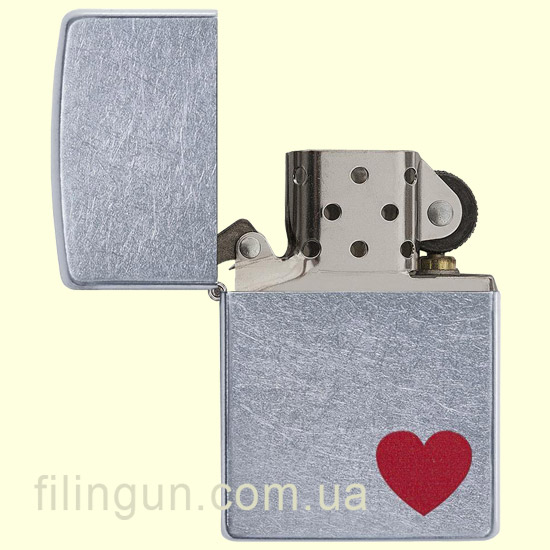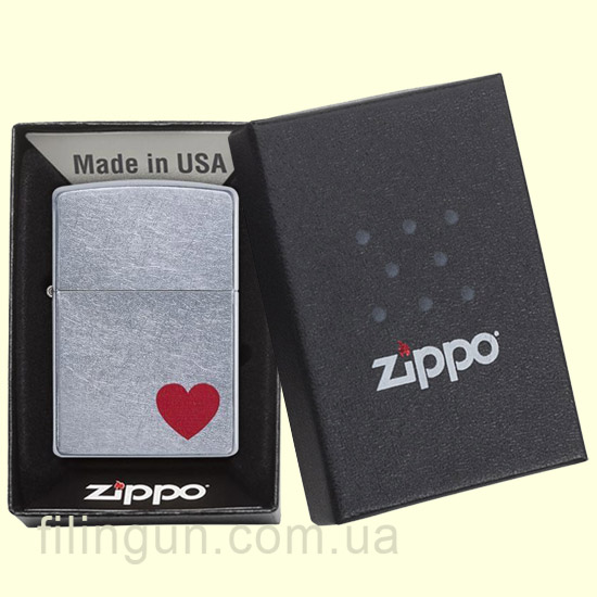Классическая бензиновая зажигалка Zippo 29060 Love Street Chrome. Металлический корпус имеет матовое, одно из самых не прихотливых, хромированное покрытие, на котором не остается следов от пальцев. На лицевой стороне цветное изображение сердца, как символа любви. Поставляется в подарочной коробочке черного цвета, созданной из экологически чистых материалов, с фирменным логотипом компании.