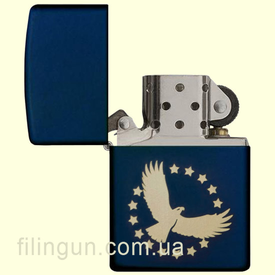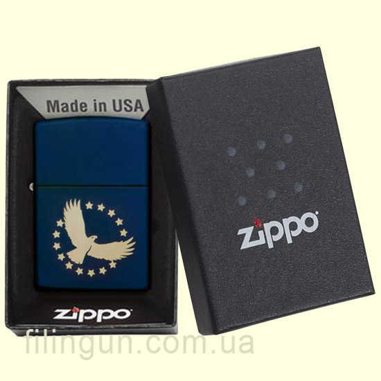 Классическая бензиновая зажигалка Zippo 29527 Eagle Navy Matte. Металлический корпус имеет темно-синее матовое покрытие, стойкое к царапинам и стиранию. На лицевой стороне гравировка орла. Поставляется в подарочной коробочке черного цвета, созданной из экологически чистых материалов, с фирменным логотипом компании.