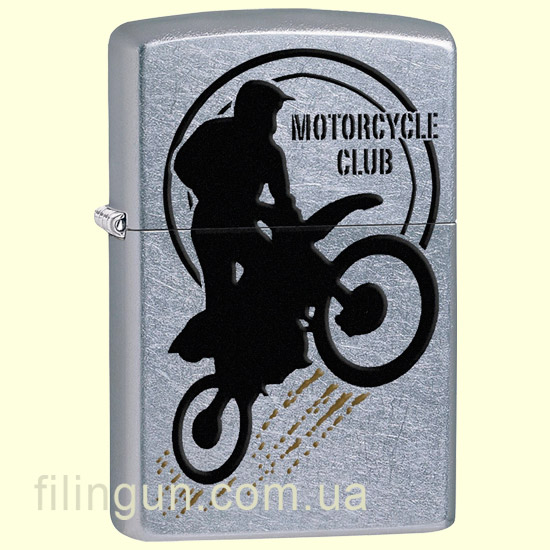 Классическая бензиновая зажигалка Zippo 29695 Motorbike Club Desing Street Chrome. Металлический корпус имеет матовое, одно из самых не прихотливых, хромированное покрытие, на котором не остается следов от пальцев. На лицевой стороне стилизованное изображение мотоциклиста на байке. Поставляется в подарочной коробочке черного цвета, созданной из экологически чистых материалов, с фирменным логотипом компании.