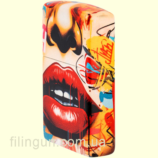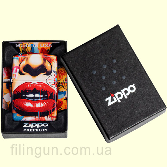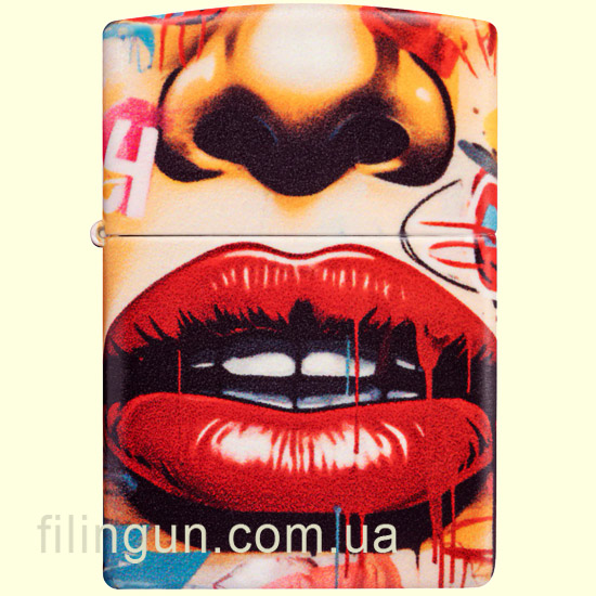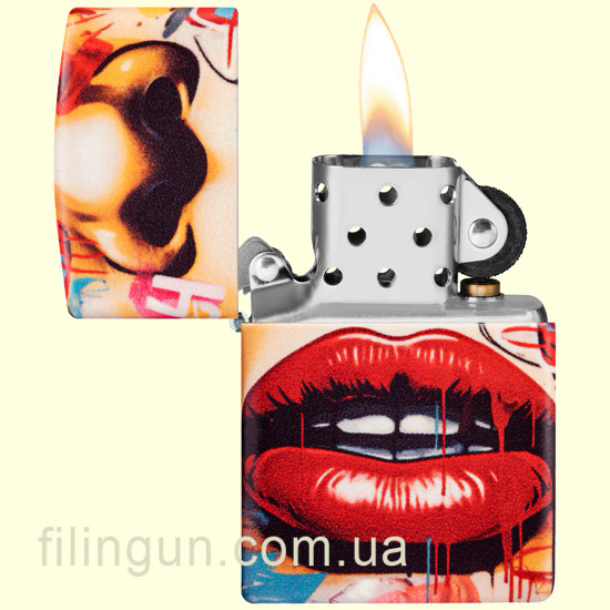 Зажигалка выполнена в классическом корпусе Zippo с надежным металлическим основанием и фирменной отделкой по технологии 540 Color. Особенность этой модели – яркий рисунок в стиле стрит-арт, который делает её настоящим произведением искусства. Вдохновленная современными уличными фресками, передает эффект свежей краски, дополняемой смелым изображением блестящих красных губ, окруженных дерзкими элементами граффити.
