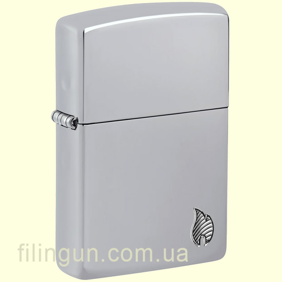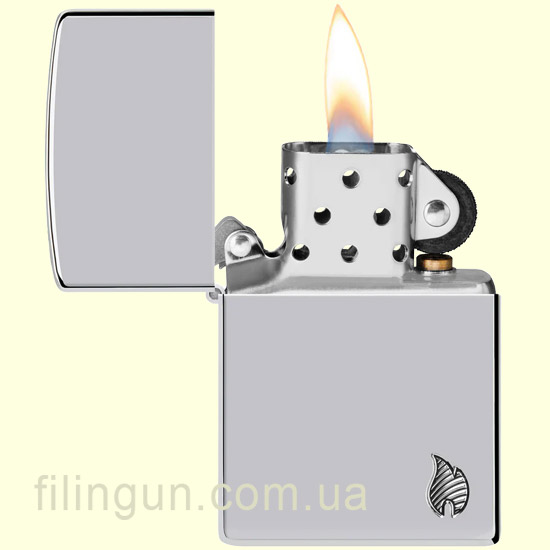 Дизайн зажигалки выполнен в хромированном стиле с выгравированным огненным узором, который придает ей элегантный и динамичный вид. Классический логотип пламени Zippo, выполненный в минималистичном стиле Deep Carve, располагается в правом нижнем углу, подчеркивая элегантность и утонченность дизайна. Это не просто зажигалка, а настоящий аксессуар, который привлекает внимание и может стать отличным подарком для ценителей качественных и стильных вещей.