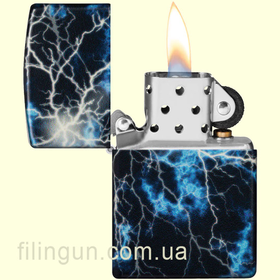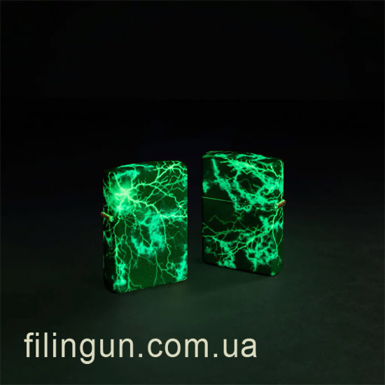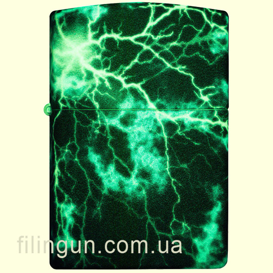 Мощная буря разгуливает по всему пространству этой прекрасной зажигалки. Замысловатая сеть молний переплетается через каждую ее поверхность, подчеркивая ее уникальный дизайн, который сверкает еще ярче в темноте благодаря особому покрытию "Свечение в темноте".