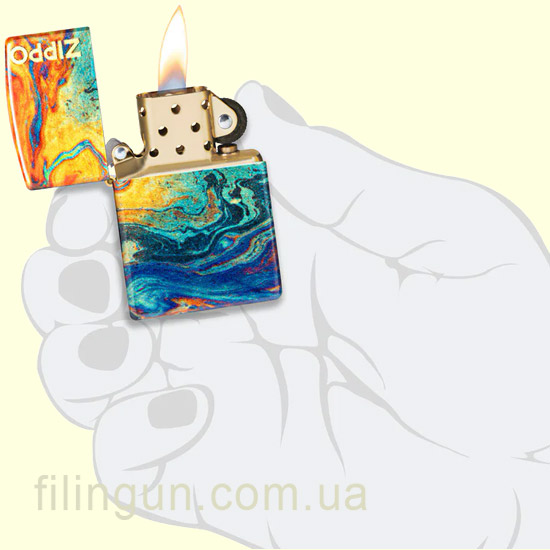 Зажигалка Zippo 48778 Colorful Zippo Design выполнена в уникальном цветном дизайне 540 Fusion который отражает ослепительные каньоны и пещеры американского Юго-Запада, и сочетает в себе яркие и насыщенные оттенки. Цветовые слои плавно переходят по всему корпусу изделия, а логотип Zippo создает изысканный контраст с органическим дизайном. Такая зажигалка станет отличным аксессуаром как для повседневного использования, так и для особых случаев. На корпусе можно заметить изысканные детали и качественное покрытие, которое обеспечивает долговечность и устойчивость к износу.