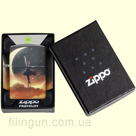 Эта модель Zippo отличается уникальным дизайном, вдохновленным мифологией. На этой волшебной зажигалке изображена изящная танцовщица, которая совершает пируэт в форме полумесяца. Ее грация наполняет пространство магией, а каждый взгляд приковывает внимание к этому изящному образу. Под танцующей фигурой разворачивается звездный небосвод, сияющий в ночное время благодаря уникальному покрытию " Glow-in-the-Dark ". Этот эффект создает атмосферу загадочности и волшебства, делая каждое использование этой зажигалки особенным и незабываемым.