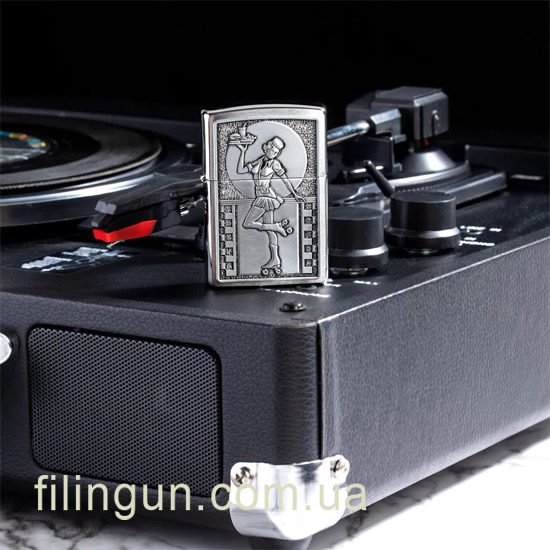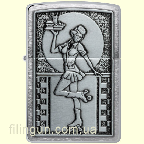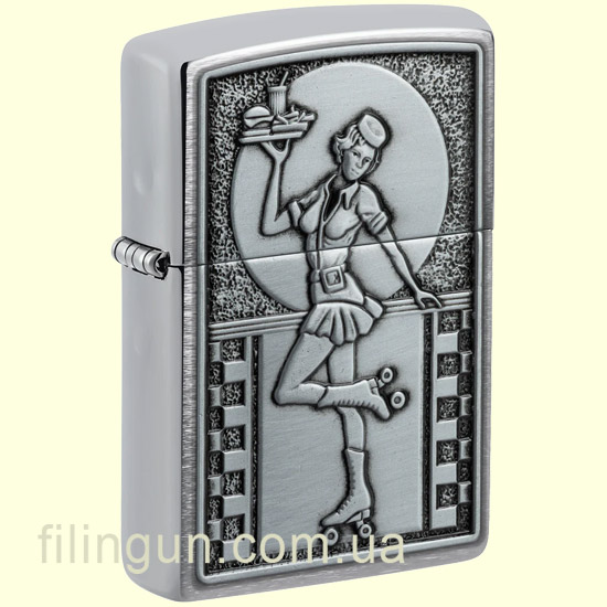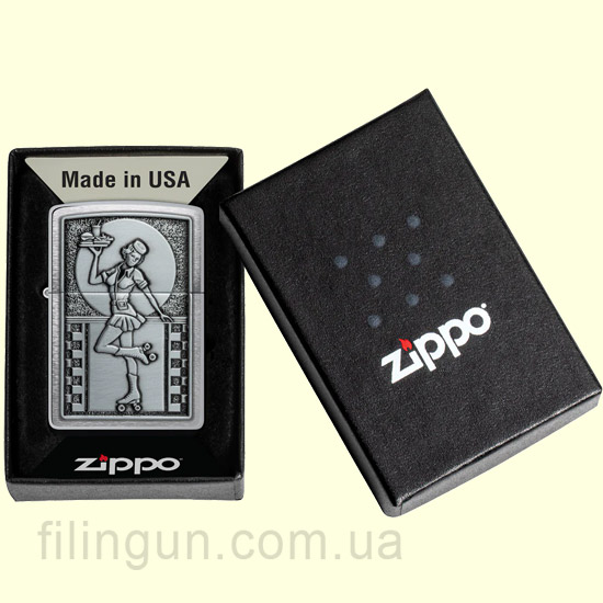 Качество. Zippo славится своим превосходным качеством и долговечностью. Зажигалка Zippo 48904 Roller Waitress Emblem Brushed Chrome не исключение.