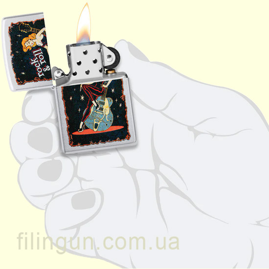 Дизайн. Стильный и оригинальный дизайн Color Image изображена модель в стиле пин-ап, отдыхающая на огромной гитаре в винтажном стиле в сочетании с матовым хромом делают эту зажигалку неповторимой. Элегантный финиш придает ей изысканный вид, который подходит как для повседневного использования, так и для особых моментов.