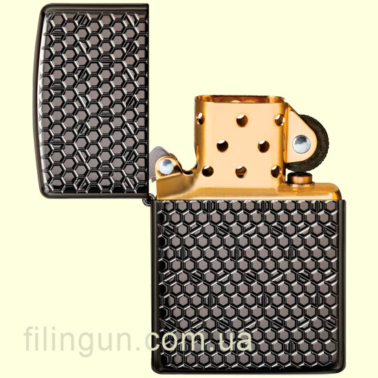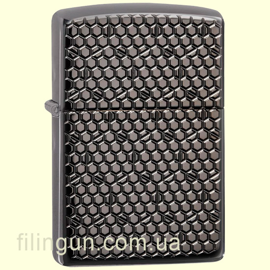 Бронированная бензиновая зажигалка Zippo 49021 Armor Hexagon Design Black Ice. Утолщенный, металлический корпус имеет красивую темно-дымчатую, глянцевую поверхность. В обработке поверхности корпуса зажигалки применена запатентованная компанией, специальная PVD технология, придающая высокую стойкость поверхности к истиранию и появлению царапин. На лицевой стороне методом глубокой резной высечки нанесено оригинальное изображение в виде геометрического узора. Нижний штамп подтверждает, что зажигалка из серии Armor® и имеет утолщенные - примерно в 1,5 раза в сравнении со стандартными версиями, стенки корпуса. Упакована в фирменную подарочную упаковку с логотипом Zippo. Для превосходной работы используйте только фирменное топливо Zippo.