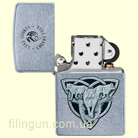 Только оригинальная ветрозащитная зажигалка Зиппо 49099 ANNE STOKES Wolf Pack Street Chrome имеет характерный щелчок Zippo.