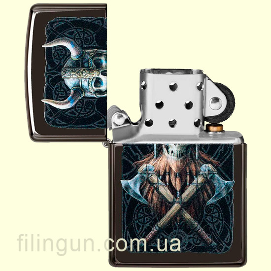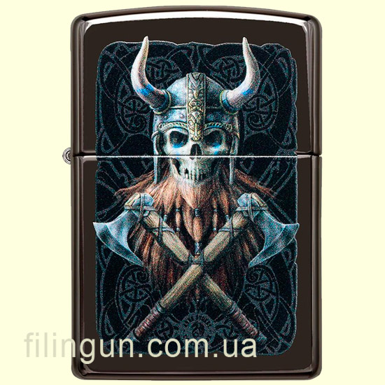 Бензиновая ветрозащитная зажигалка Zippo 49106 ANNE STOKES Viking Skull High Polish Black. Металлический корпус имеет глянцевую, зеркальную поверхность интенсивного черного цвета. В обработке поверхности корпуса зажигалки применена запатентованная компанией, специальная PVD технология, придающая высокую стойкость поверхности к истиранию и появлению царапин. На лицевой стороне нанесено цветное изображение в стиле фентези - воина Скелета Викинга, от английской художницы-иллюстратора Anne Stokes (Энн Стоукс). Упакована в фирменную подарочную упаковку с логотипом Zippo. Для превосходной работы используйте только фирменное топливо Zippo.