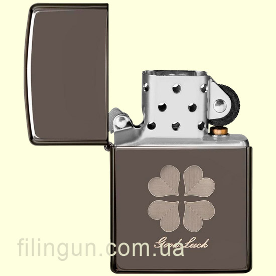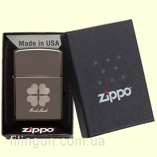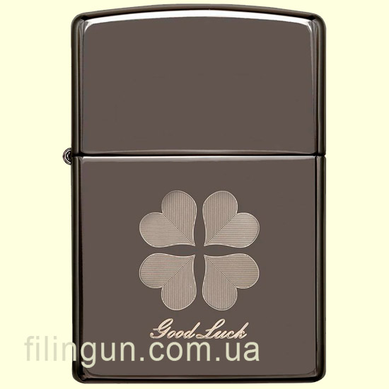 Бензиновая ветрозащитная зажигалка Zippo 49120 Good Luck Design Black Ice. Металлический корпус имеет красивую темно-дымчатую, глянцевую поверхность. В обработке поверхности корпуса зажигалки применена запатентованная компанией, специальная PVD технология, придающая высокую стойкость поверхности к истиранию и появлению царапин. На лицевой стороне нанесено изображение четырехлистного клевера с надписью "Good Luck" (Удачи). Упакована в фирменную подарочную упаковку с логотипом Zippo. Для превосходной работы используйте только фирменное топливо Zippo.