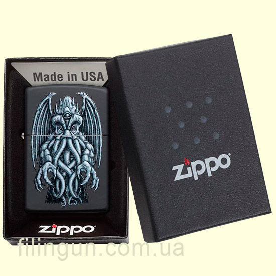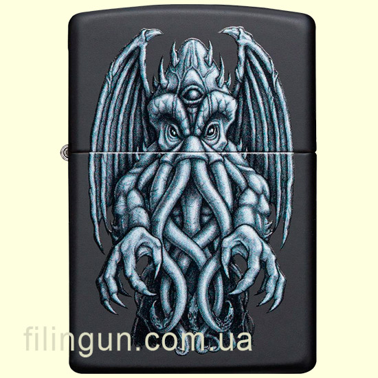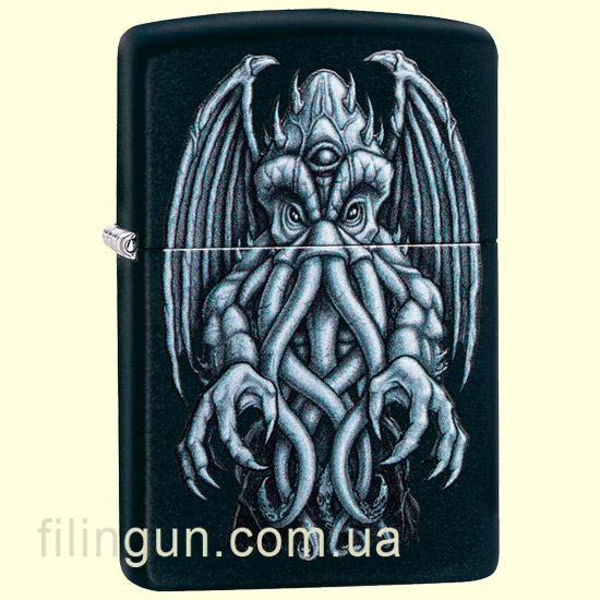 Бензиновая ветрозащитная зажигалка Zippo 49122 Winged Monster Design Black Matte. Металлический корпус имеет черное матовое покрытие стойкое к царапинам и стиранию. На лицевой стороне, нанесено оригинальное изображение Ктулху, из рассказов Г.Ф. Лавкрафта - исполинского морского чудовища спящего на дне Тихого океана. Упакована в фирменную подарочную упаковку с логотипом Zippo. Для превосходной работы используйте только фирменное топливо Zippo.