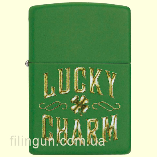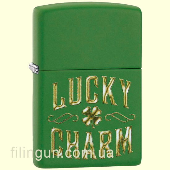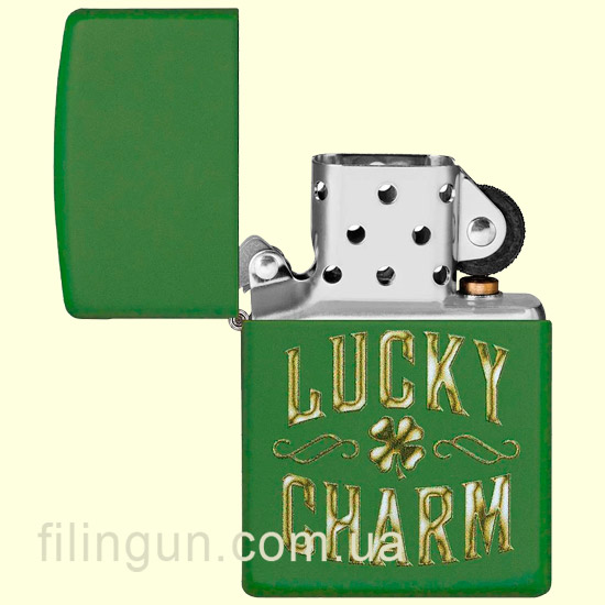 Бензиновая ветрозащитная зажигалка Zippo 49138 Lucky Charm Design Moss Green Matte. Металлический корпус имеет зеленое матовое покрытие, стойкое к царапинам и стиранию. На лицевой стороне нанесено изображение четырехлистного клевера с надписью "Lucky Charm". Упакована в фирменную подарочную упаковку с логотипом Zippo. Для превосходной работы используйте только фирменное топливо Zippo.