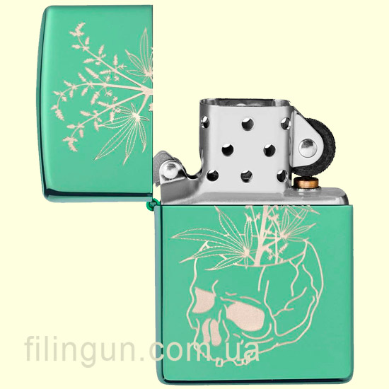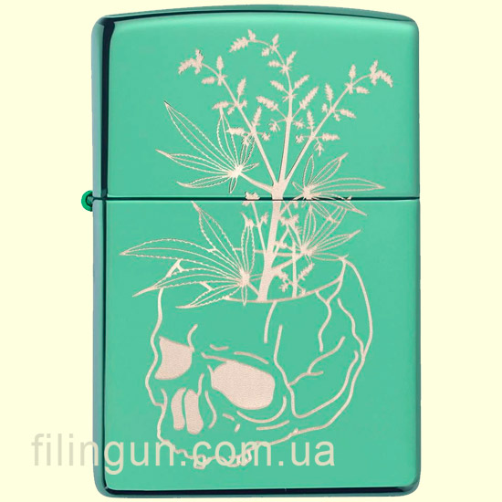 Бензиновая ветрозащитная зажигалка Zippo 49142 Botanical Design High Polish Green. Металлический корпус имеет глянцевую, зеркальную поверхность интенсивно-зеленого цвета с изменяющимся оттенком, под влиянием положения или освещенности. В обработке поверхности корпуса зажигалки применена запатентованная компанией, специальная PVD технология, придающая высокую стойкость поверхности к истиранию и появлению царапин. На лицевой стороне методом лазерной гравировки нанесено изображение черепа с растущей в нем коноплей. Упакована в фирменную подарочную упаковку с логотипом Zippo. Для превосходной работы используйте только фирменное топливо Zippo.