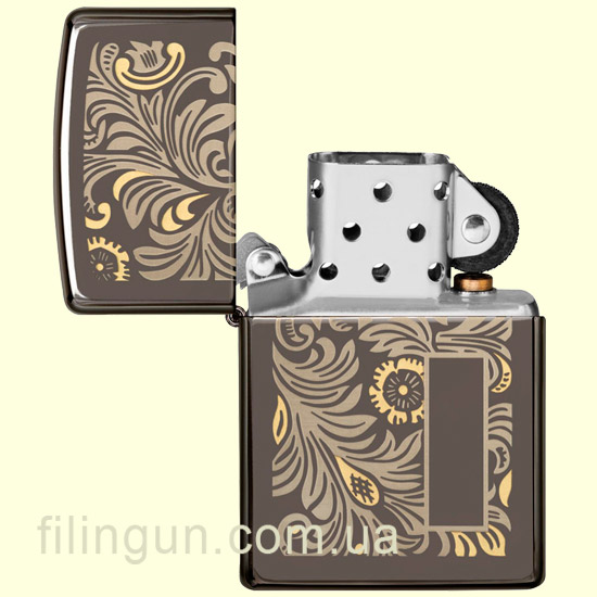 Настоящая ветроустойчивая, классическая зажигалка Zippo 49162 Luxury Venetian Design Black Ice с характерным фирменным "щелчком". Металлический корпус имеет красивую темно-дымчатую, глянцевую поверхность. В обработке поверхности корпуса зажигалки применена запатентованная компанией, специальная PVD технология, придающая высокую стойкость поверхности к истиранию и появлению царапин. На лицевой стороне методом двухцветной лазерной гравировки нанесено изображение узора в венецианском стиле. Поставляется в подарочной коробочке черного цвета, созданной из экологически чистых материалов, с фирменным логотипом компании.