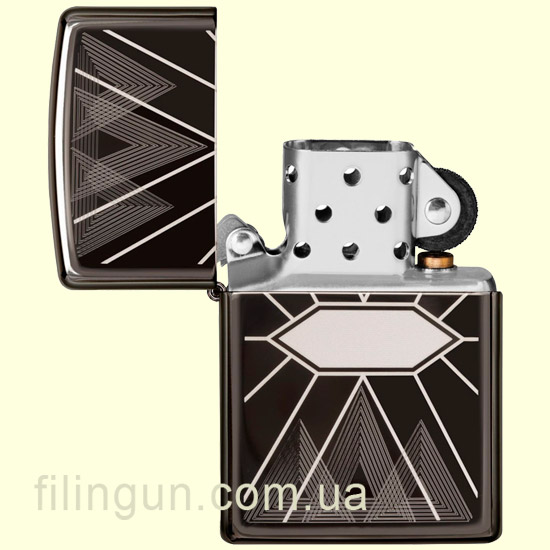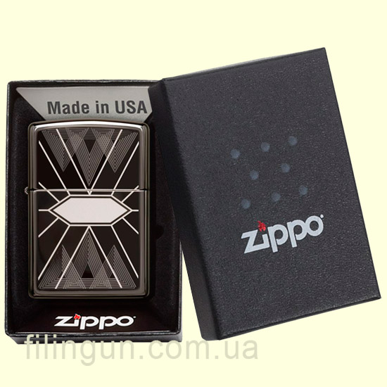 Настоящая ветроустойчивая, классическая зажигалка Zippo 49164 Triangles Geometry Luxury Design Black Ice с характерным фирменным "щелчком". Металлический корпус имеет красивую темно-дымчатую, глянцевую поверхность. В обработке поверхности корпуса зажигалки применена запатентованная компанией, специальная PVD технология, придающая высокую стойкость поверхности к истиранию и появлению царапин. На лицевой стороне методом лазерной автоматической гравировки нанесено изображение в геометрическом стиле, с местом для гравировки личных инициалов или памятной даты. Поставляется в подарочной коробочке черного цвета, созданной из экологически чистых материалов, с фирменным логотипом компании.