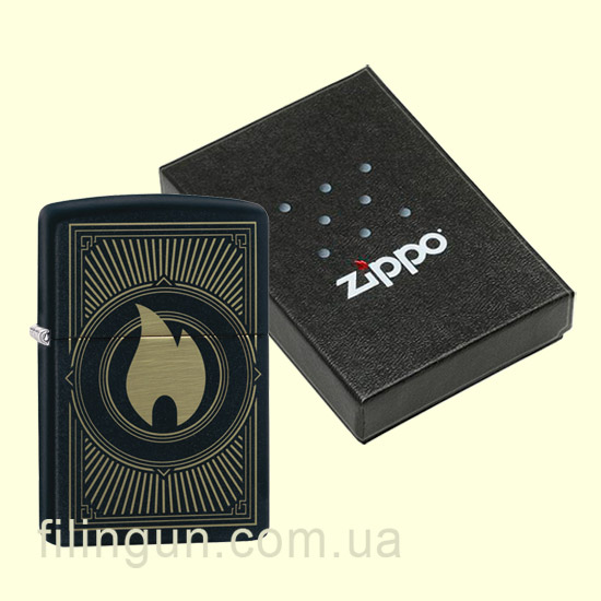 Бензиновая ветрозащитная зажигалка Zippo 49217 Deco Flame Design Black Matte. Металлический корпус имеет черное матовое покрытие, стойкое к царапинам и стиранию. На лицевой стороне методом лазерной гравировки в стиле Арт-деко нанесено оригинальное изображение фирменного язычка пламени Zippo. Упакована в фирменную подарочную упаковку с логотипом компании. Для превосходной работы используйте только фирменное топливо Zippo.