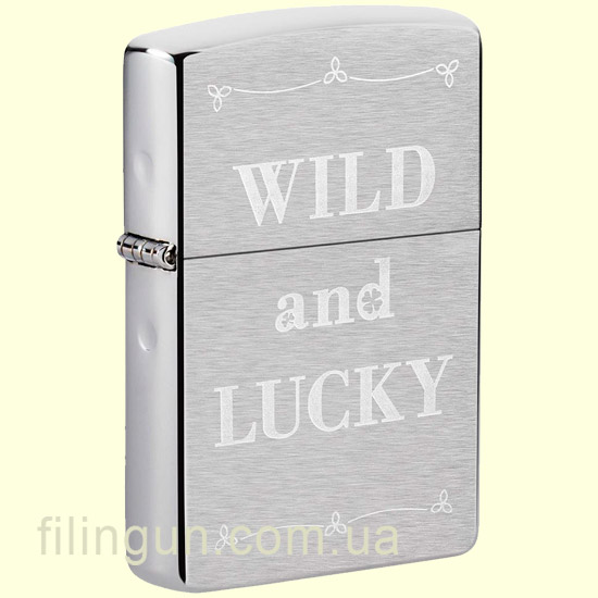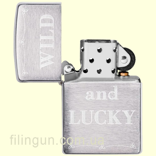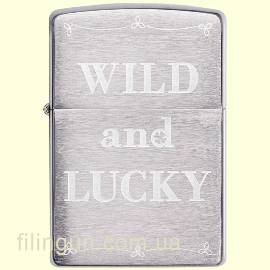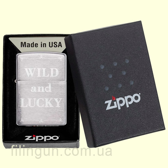 Классическая бензиновая ветрозащитная зажигалка Zippo 49256 Wild and Lucky Design Brushed Chrome. Металлический корпус имеет матовое хромированное покрытие с тонкой горизонтальной текстурой на основных сторонах и отполированными до блеска боковинками. На лицевой стороне оригинальная гравировка с надписью: "Wild and Lucky" (Дикий и Счастливый). Упакована в фирменную подарочную упаковку с логотипом Zippo. Для превосходной работы используйте только фирменное топливо Zippo.