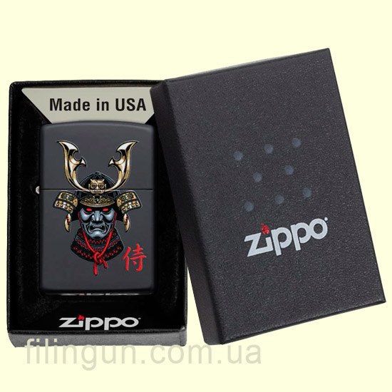 Бензиновая ветрозащитная зажигалка Zippo 49259 Samurai Helmet Design Black Matte. Металлический корпус имеет черное матовое покрытие, стойкое к царапинам и стиранию. На лицевой стороне иллюстрация японского воина-самурая, олицетворяющая уважение, благородство и власть. Упакована в фирменную подарочную упаковку с логотипом Zippo. Для превосходной работы используйте только фирменное топливо Zippo.