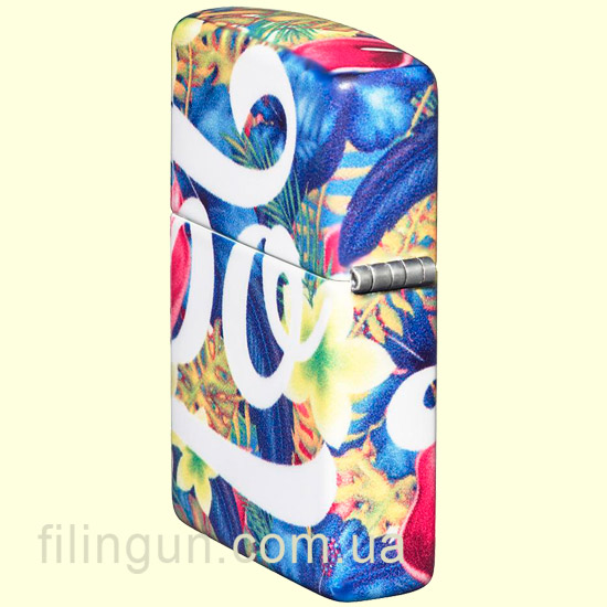 Бензиновая ветрозащитная зажигалка Zippo 49436 Zippo Floral Design 540 Color - новинка в линейке компании, по части технологии декорирования, не имеющая аналогов. Процес нанесения Zippo 540 Color, позволяет покрывать абсолютно всю поверхность зажигалки детально прорисованными художественными изображениями. В дизайне зажигалки используется нежный узор из тропических цветов, с логотипом Zippo, органично обтекающий весь корпус. Упакована в фирменную подарочную упаковку с логотипом компании. Для превосходной работы используйте только фирменное топливо Zippo.