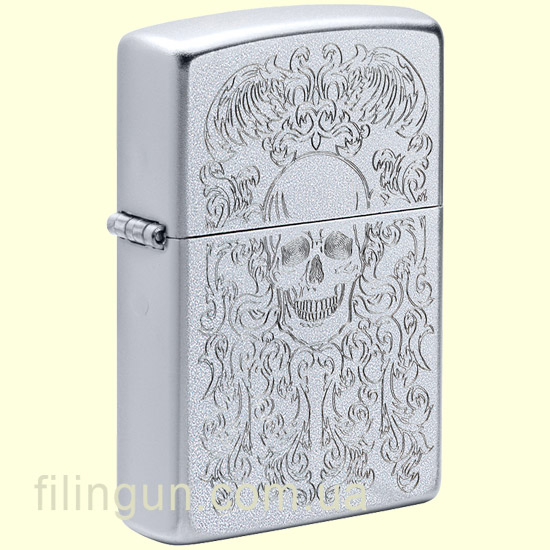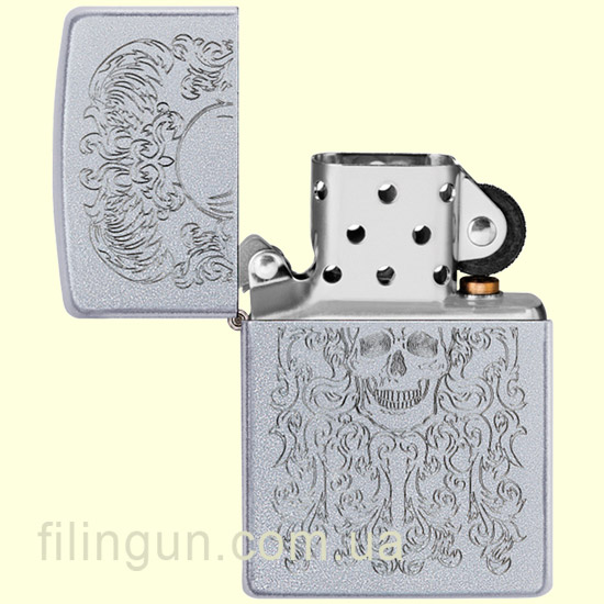 Только оригинальная ветрозащитная зажигалка Зиппо 49571 Skull Design Satin Chrome имеет характерный щелчок Zippo.