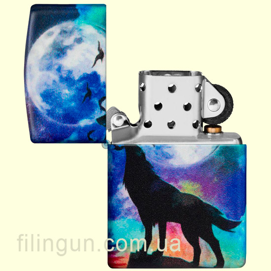 Бензиновая ветрозащитная зажигалка Zippo 49683 Wolf Design 540 Color - новинка в линейке компании, по части технологии декорирования, не имеющая аналогов. Процес нанесения Zippo 540 Color, позволяет покрывать абсолютно всю поверхность зажигалки детально прорисованными художественными изображениями. Дизайн зажигалки изображает силуэты волков, воющих в яркую полную луну, летящую высоко в голубом ночном небе. Упакована в фирменную подарочную упаковку с логотипом компании. Для превосходной работы используйте только фирменное топливо Zippo.