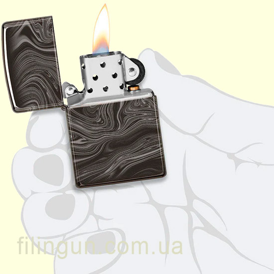 Zippo 49812 выделяется своим уникальным оформлением: корпус украшен узором, имитирующим мрамор, что придаёт зажигалке роскошный и современный вид. Изящный узор украшает все стороны зажигалки High Polish Black, созданной с использованием инновационного процесса Photo Image 360°. Лаконичный дизайн в сочетании с высококачественными материалами делает эту модель универсальной — она подойдёт как для ежедневного использования, так и в качестве подарка.