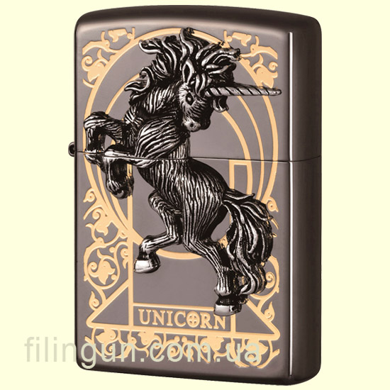 Эксклюзивно, ограниченным тиражом на территории Украины - классическая бензиновая зажигалка Zippo ZA-1-32B Unicorn 2 Emblem Black Ice (изготовленная компанией Zippo специально для азиатского рынка). Металлический корпус имеет красивую темно-дымчатую, глянцевую поверхность. В обработке поверхности корпуса зажигалки применена запатентованная компанией, специальная PVD технология, придающая высокую стойкость поверхности к истиранию и появлению царапин. На лицевой стороне объемная эмблема единорога украшена гравировкой из цветочного орнамента, которая раскрывается на тыльной стороне в виде лесного пейзажа. Поставляется в подарочной коробочке черного цвета, созданной из экологически чистых материалов, с фирменным логотипом компании.