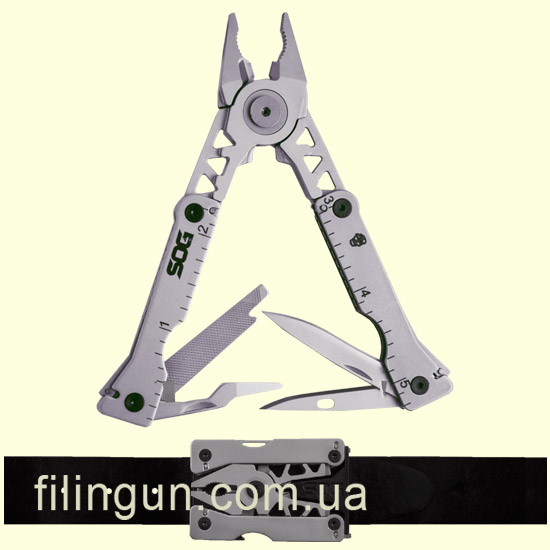 Наш інтернет магазин радий запропонувати вашій увазі мультитул SOG Sync I (SN1001-CP) - вельми оригінальний і компактний інструмент для повсякденного носіння. Ключовою особливістю даної моделі є можливість носіння її в якості пряжки для ременя або просто закріплювати на елементах одягу, стропах спорядження, лямках рюкзака за допомогою двокомпонентного кріплення - платформи кріплення і широкої кишенькової кліпси, що йдуть в комплекті. Габаритні розміри мультитула складають: 61 мм в довжину і 35 мм в ширину, вага 136 грам. Він підходить для ременів шириною до 3,5 см і має в своєму розпорядженні набір з 11 часто використовуваних інструментів.