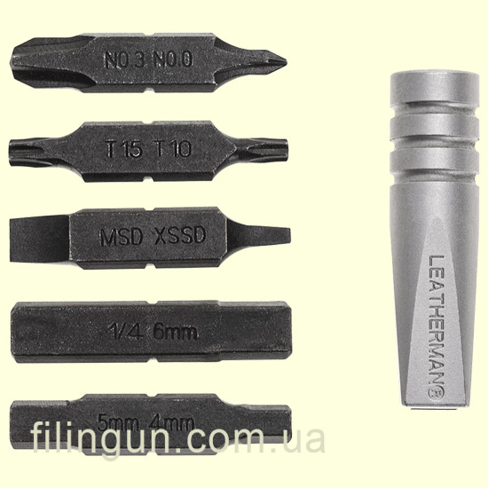 Наш інтернет магазин радий запропонувати вашій увазі набір Leatherman Removable Bit Driver (арт. 931012). Комплект складається з адаптера для біт, 5 насадок різної форми (Philips, TORX, Flathead, Hex) і пластикового бітотримача для зручності зберігання і транспортування. Застосовується з усіма інструментами і ножами Leatherman, обладнаними роз'ємом для біт (бітотримачем), а також за допомогою перехідника (адаптера) може використовуватися спільно з хрестовою викруткою Philips. Повністю сумісний з подовжувачем Bit Driver Extender і набором біт Leatherman Bit Kit.