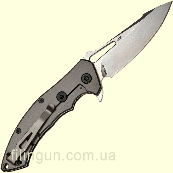 Відкривається однією рукою за допомогою підпальцевої виїмки або фліппера, а шарикопідшипник забезпечує чудово плавний хід при відкритті. Форма клинка - Wharnkliffe має довжину 9,4 см і товщину в 3 мм з нержавіючої сталі марки 9Cr18MoV що краще, ніж у попередніх моделей, має гарну корозійну стійкість, відмінно тримає заточування і легко правиться, а також фінішну обробку Stonewash яка вбереже від незначних подряпин при частій експлуатації.